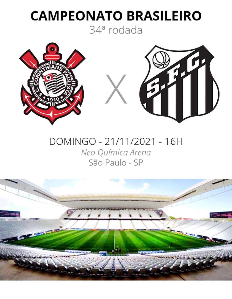 Corinthians e Santos se enfrentam neste domingo, às 16h (de Brasília), na Neo Química Arena, pela 34ª rodada do Campeonato Brasileiro. Clique aqui para acompanhar a partida em Tempo Real, com vídeos exclusivos de lances e gols.